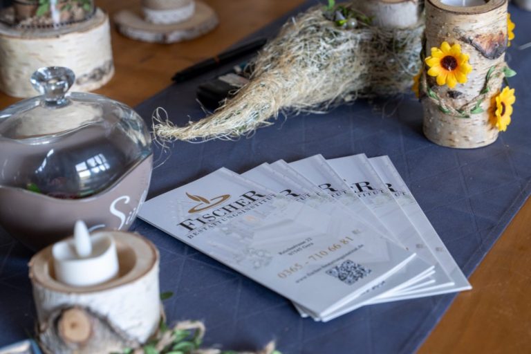 Rufen Sie uns an, sobald Sie bereit sind.  Das Bestattungsinstitut-Fischer in Gera steht Ihnen rund um die Uhr zur Seite.  Wir übernehmen auf Wunsch die Überführung des Verstorbenen, kümmern uns um Formalitäten und besprechen gemeinsam die weiteren Schritte.