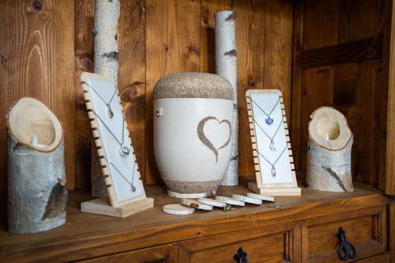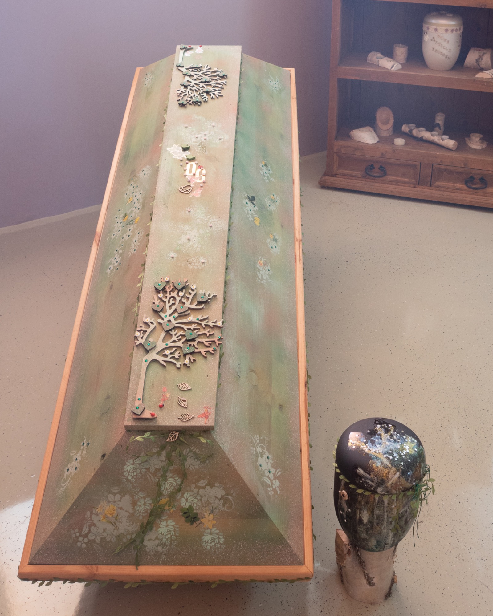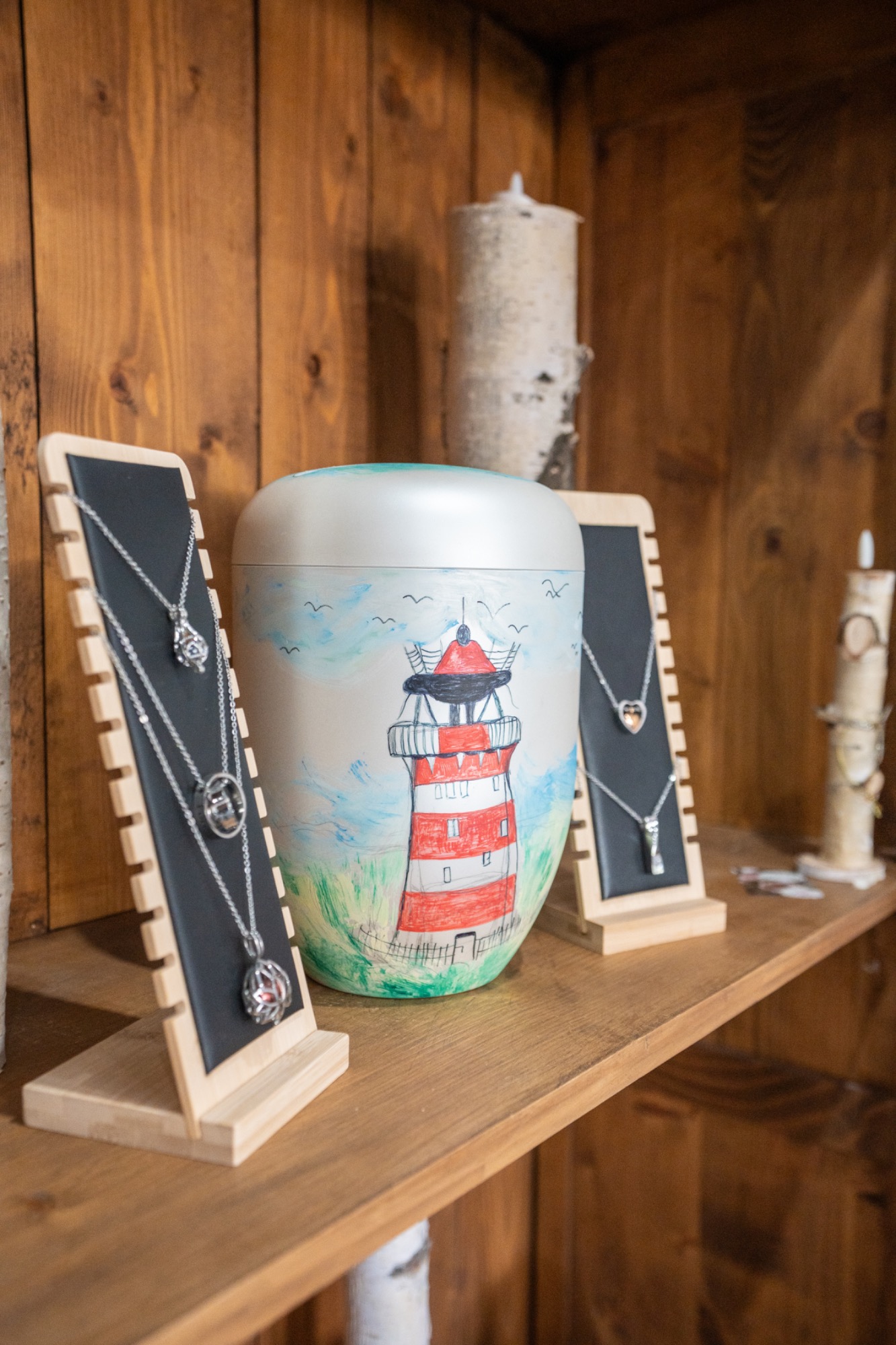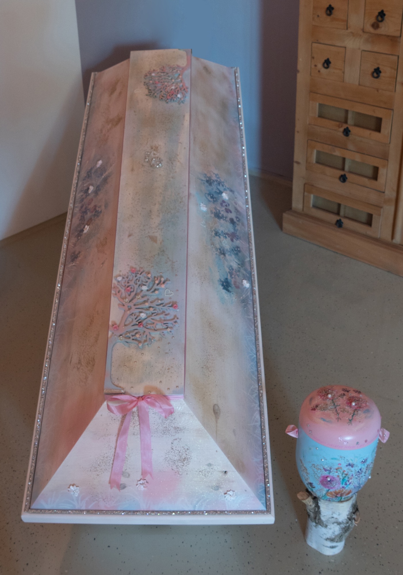 um Urnen, Särge und Grabschmuck persönlich zu gestalten.
