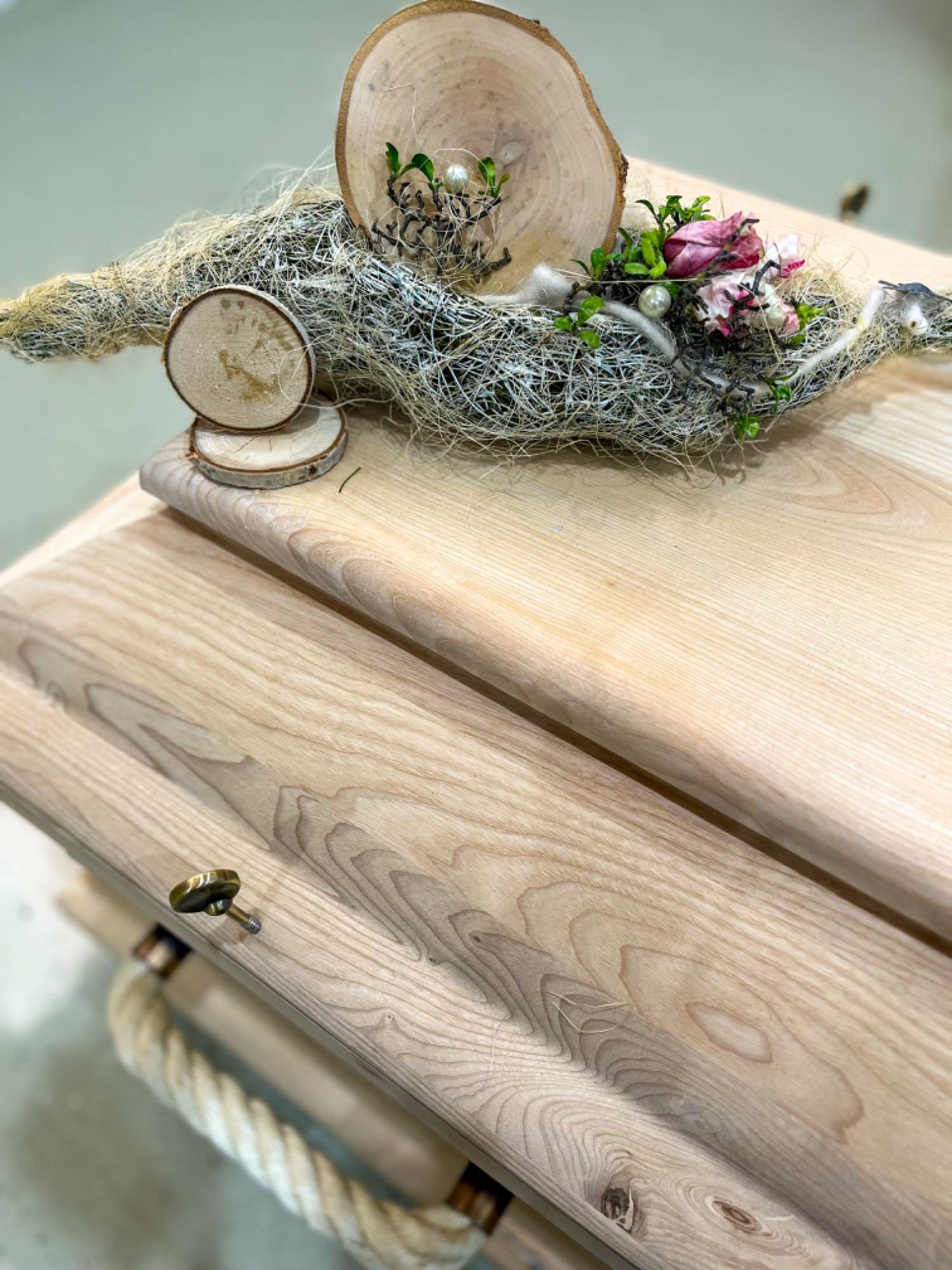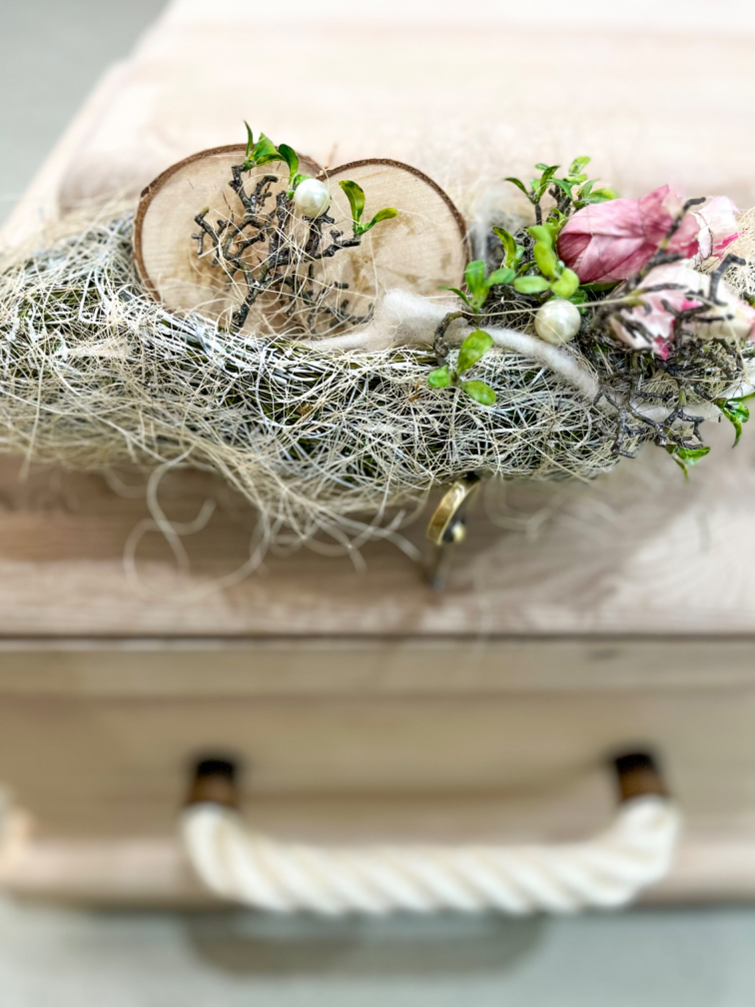 Jedes Detail entsteht in Handarbeit und verleiht dem Abschied Würde, Wärme und Persönlichkeit.